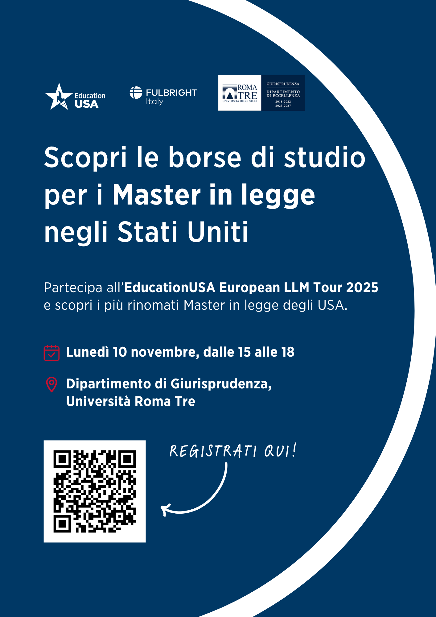 Scopri le borse di Studio per i Master in legge negli Stati UnitiLink identifier archive #link-archive-thumb-soap-86946 EducationUSA European LLM Tour 2025Lunedì 10 novembre, dalle 15 alle 18Link identifier #identifier__162359-1RegistrazioneLink identifier #identifier__8118-2Locandina Skip back to navigation