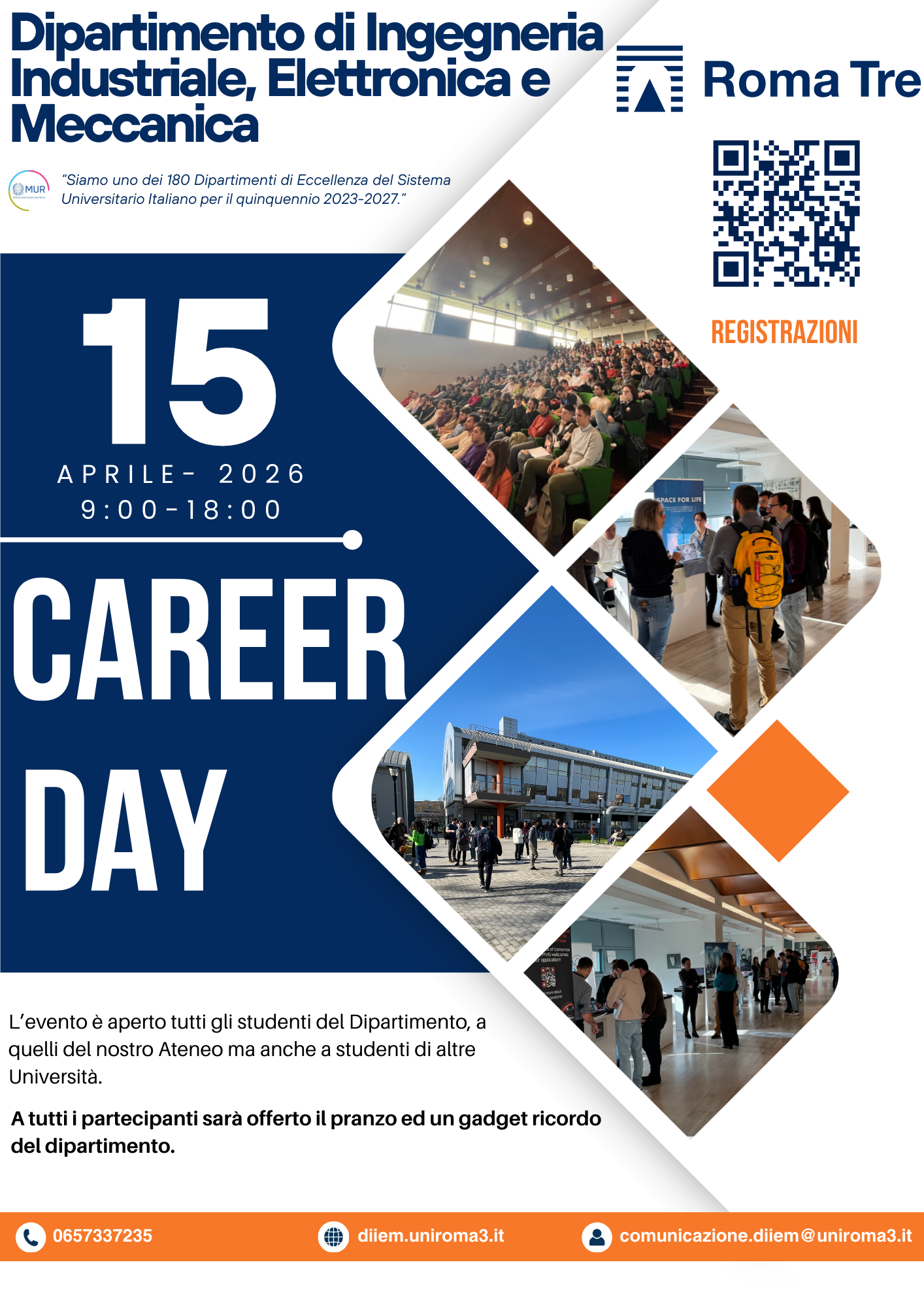 Il Dipartimento di Ingegneria Industriale, Elettronica e Meccanica organizza, mercoledì 15 aprile 2026, l'ottava edizione dell'evento che mette in contatto studenti, laureandi e laureati con le aziende del settore, al fine di fornire una panoramica sulle opportunità professionali, oltre agli strumenti necessari per orientarsi nel mondo del lavoro.