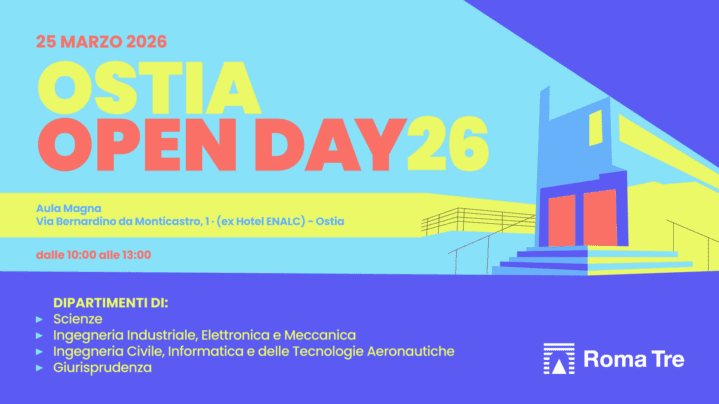 Mercoledì 25 marzo 2026 l’Università degli Studi Roma Tre aprirà le porte della sede di Ostia in Via Bernardino da Monticastro 1 (ex Hotel ENALC). Durante l’incontro gli studenti e le studentesse delle ultime classi delle scuole secondarie di secondo grado (quarte e quinte) e gli studenti iscritti a Corsi di Laurea triennali o già in possesso di un titolo di laurea di primo livello parteciperanno alla presentazione dei corsi presenti in quella sede: